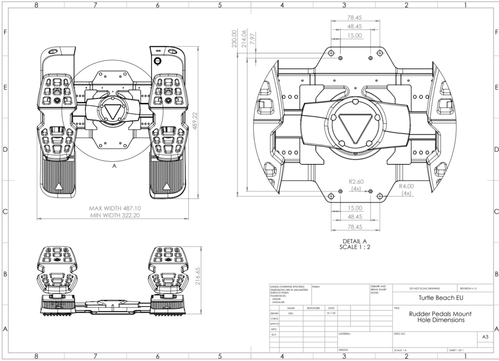 ラダーペダルは、付属のネジと取り付け穴テンプレートを使用して、既存のコックピットに固定することができます。 ネジの締めすぎに注意してください。 注意:ペダルを取り付ける際は、頑丈で平らな面に固定してください。こちらから、ベロシティラダー用のマウントホールテンプレートをダウンロードできます。 このテンプレートはミリメートル単位でしか利用できませんので、インチを使用している場合は、テンプレートに示されている寸法をインチに変換する必要があります。